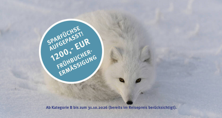 - 1.200,- Euro Frühbucher-Ermäßigung ab Kategorie B bis zum 31.10.2026 (bereits im Reisepreis berücksichtigt)