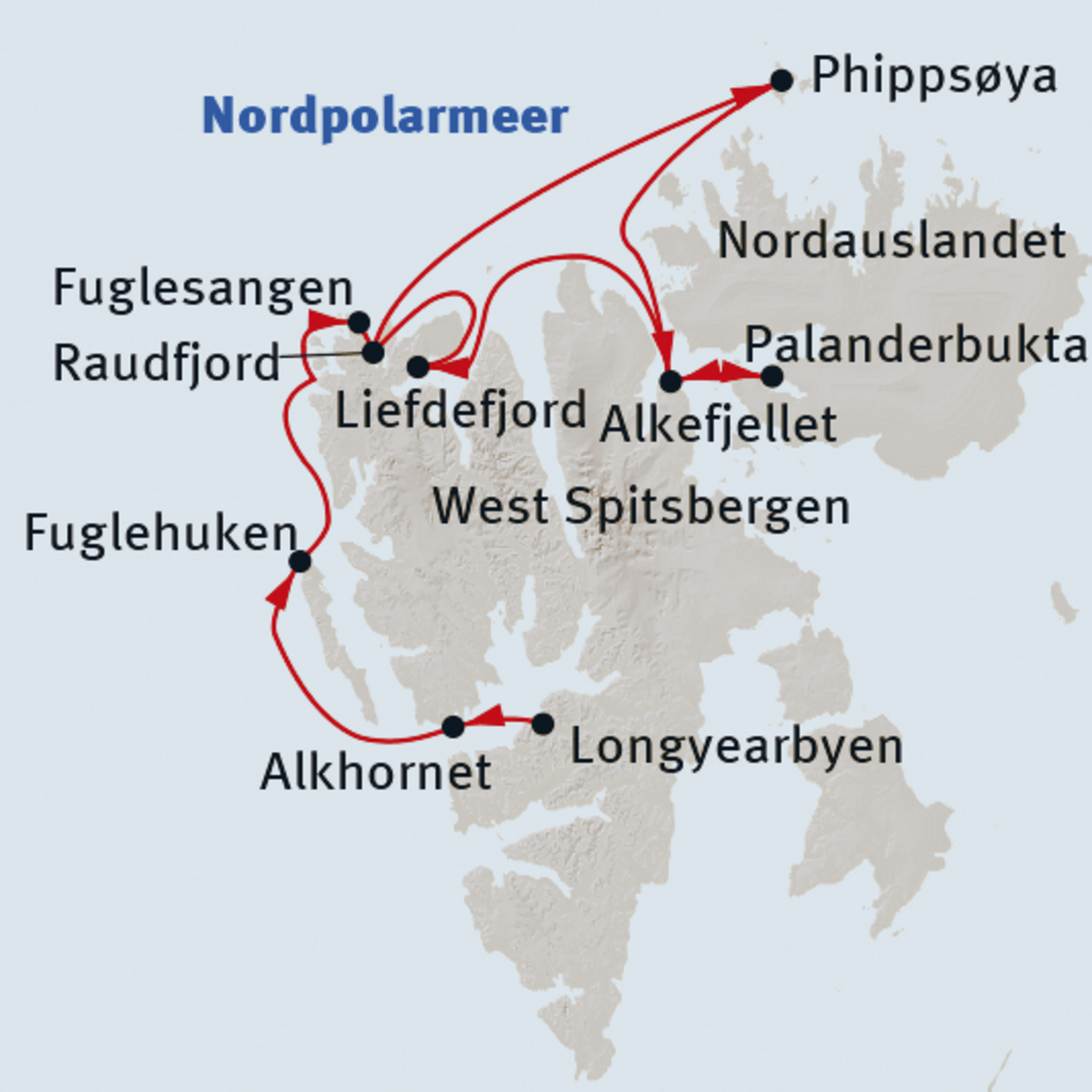 Oslo - Longyearbyen - Raudfjord - Liefdefjorden - Hinlopenstraße - Phippsøya - Longyearbyen - Oslo