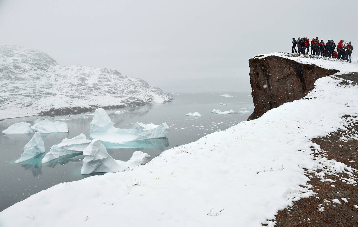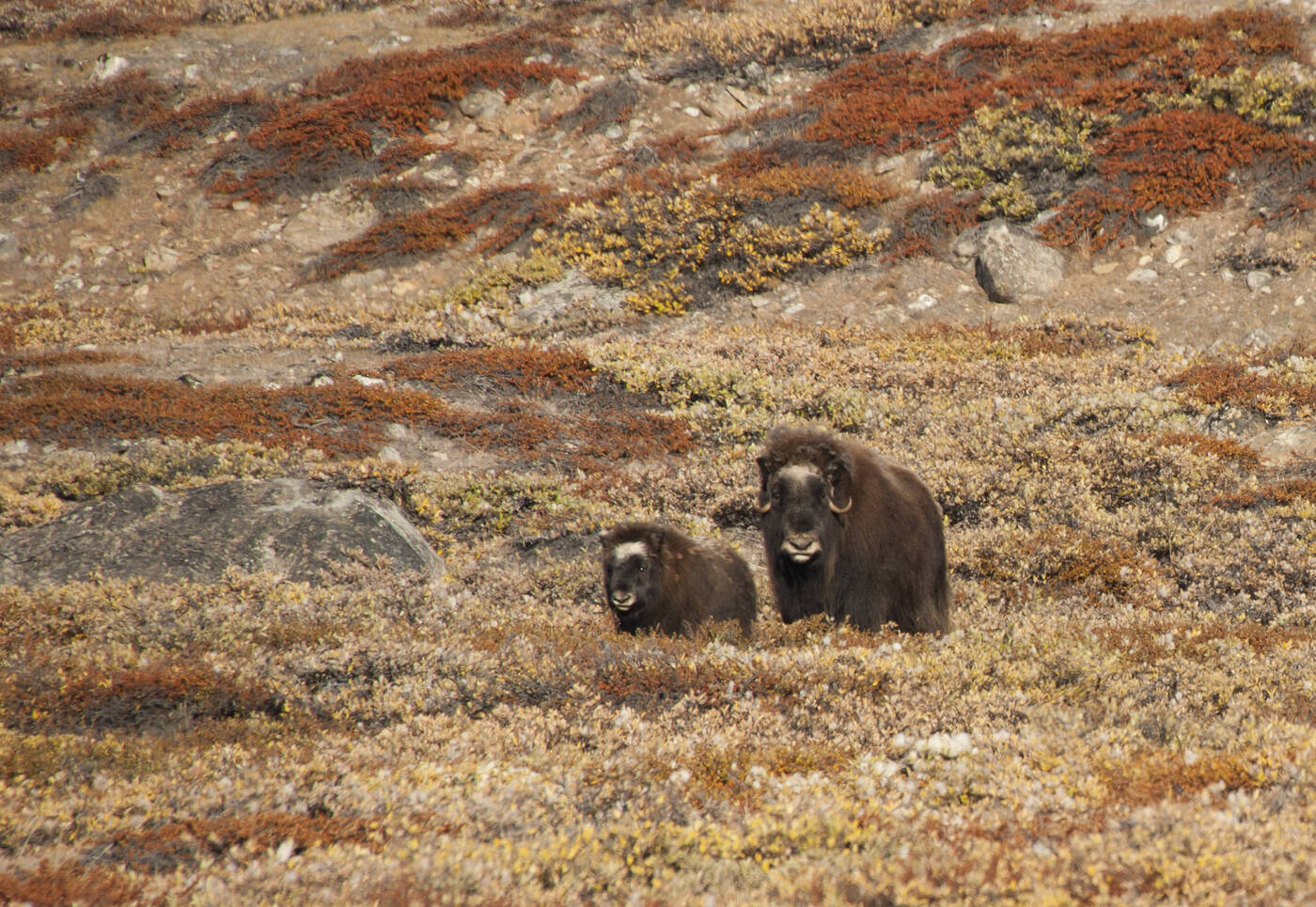 Wir haben einen Ausflug mit den Zodiacs in der Nähe von Røde Ø geplant, dort befindet sich die wahrscheinlich schönsten Eisberge der Welt: das Blau-Weiß der Eisberge bildet einen scharfen Kontrast gegen die roten Sedimenthänge. Der Plan für den Nachmittag ist, durch die nördlichen Teile des Røde Fjords zu fahren, mit der Chance, Moschusochsen und Tundra im Herbstlaub zu sehen.