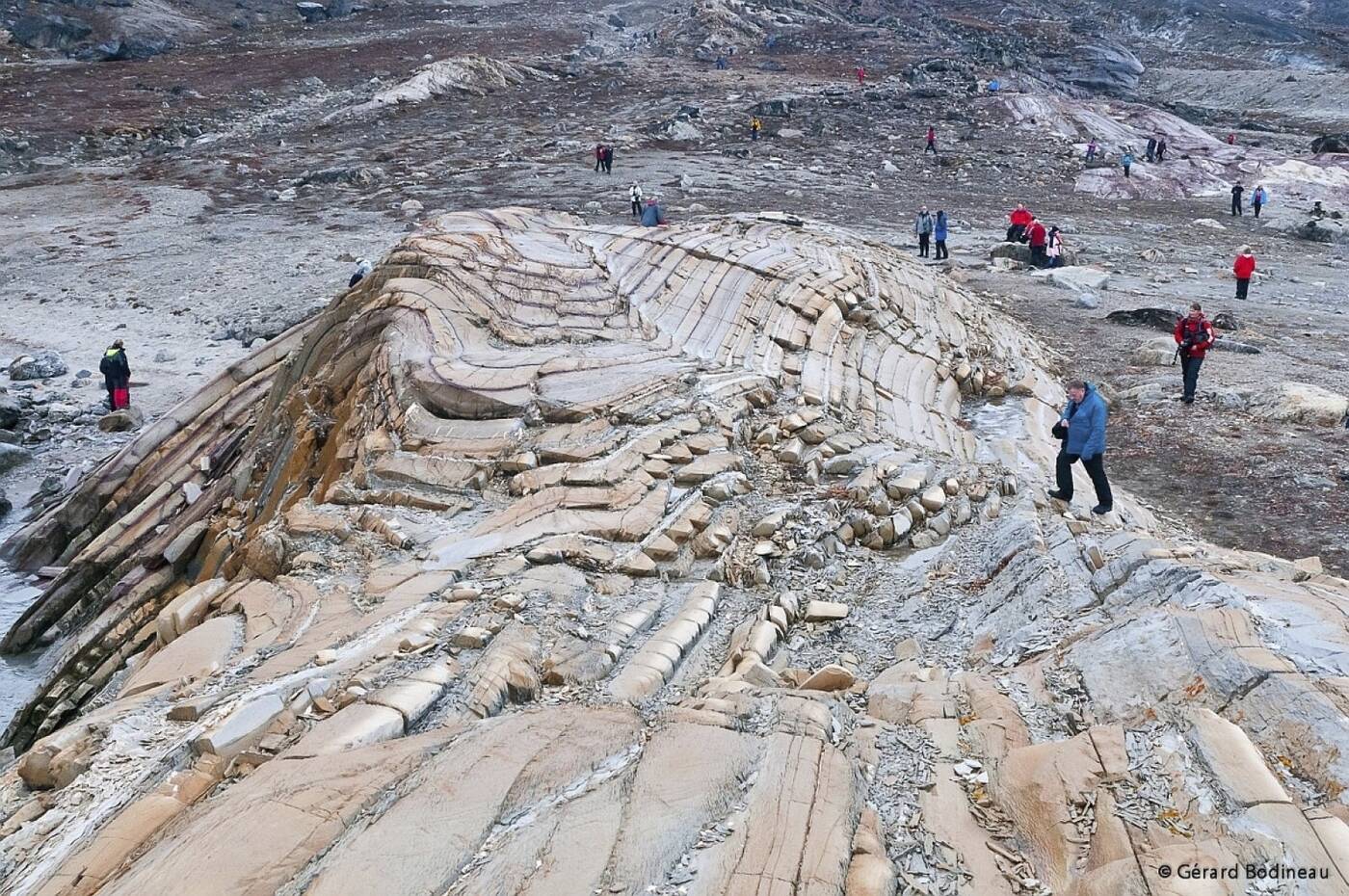 Die heutige lange Wanderung führt von Sydkap nach Nordøstbugt (12 km, 7,5 Meilen nordöstlich), wo der von Holger Danskes Briller kommende Fluss ins Meer mündet. Wir planen, am Ufer entlang nach Süden bis Satakajik zu wandern und dabei Walwirbel und die Überreste der Sommerhäuser von Thule zu sehen. Passagiere, die nicht an der langen Wanderung teilnehmen, werden sich uns an diesem Ort für den zweiten Ausflug des Tages anschließen.