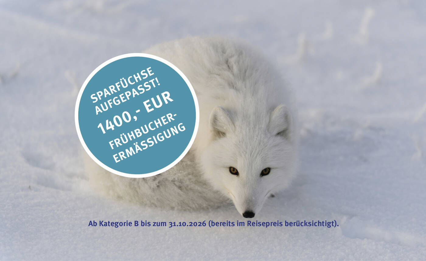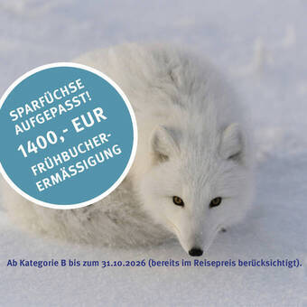 - 1.400,- Euro Frühbucher-Ermäßigung ab Kategorie B bis zum 31.10.2026 (bereits im Reisepreis berücksichtigt)