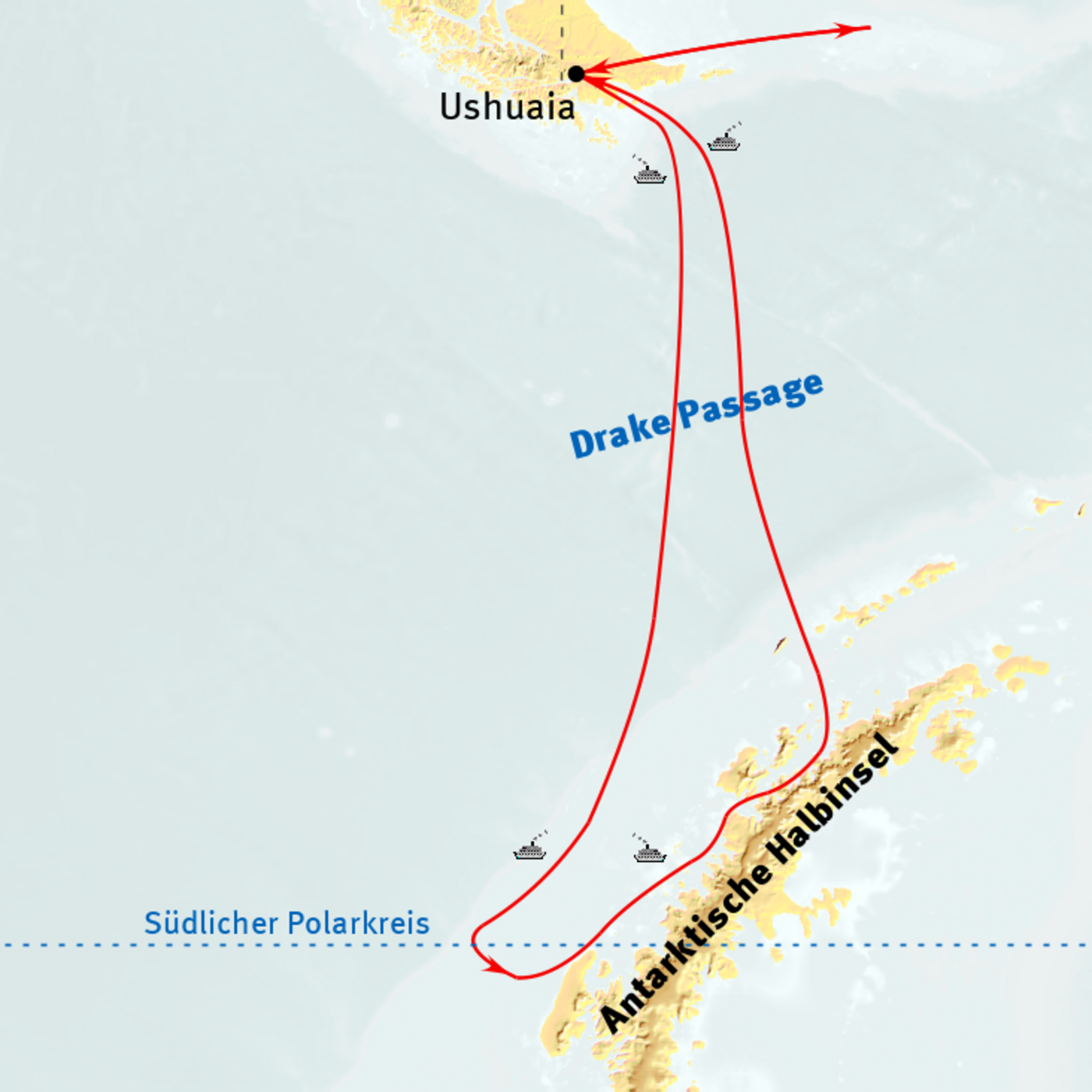 Ushuaia - Drake Passage - Antarktische Halbinsel - Polarkreis (66 Grad Süd) - Drake Passage - Ushuaia
